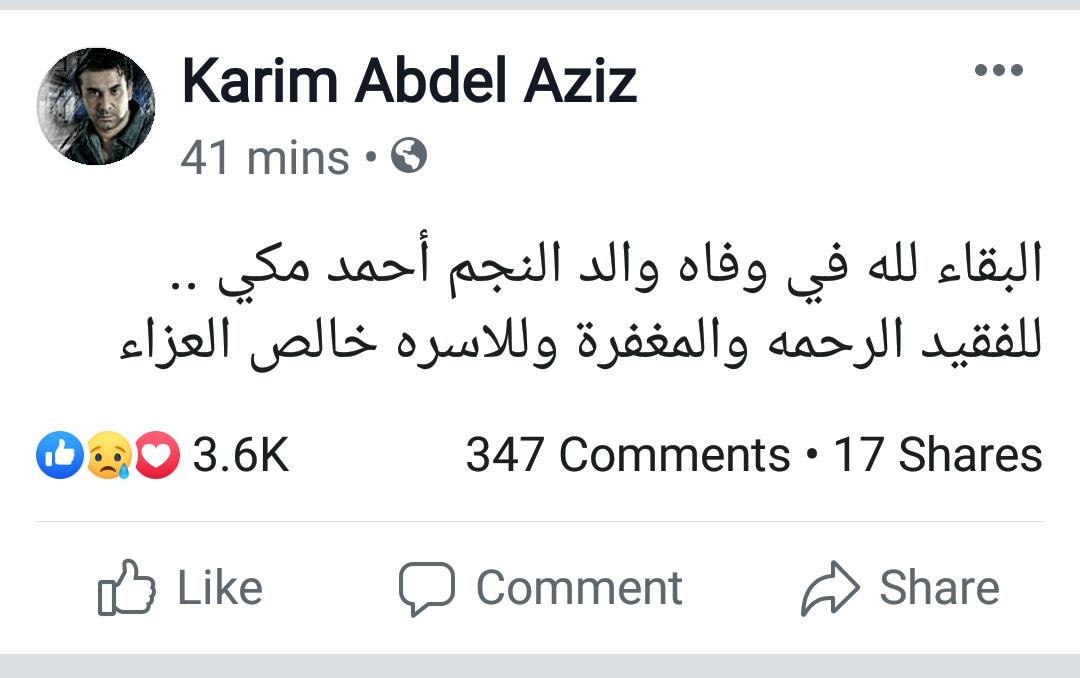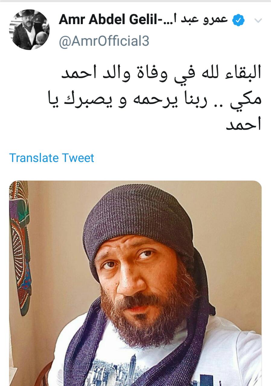 ونعى أصدقاء مكي وعدد من نجوم الفن، الراحل، عبر حساباتهم على مواقع التواصل الاجتماعي، كما سارع محبو بطل مسلسل “الكبير أوي” إلى تقديم العزاء والمواساة.
