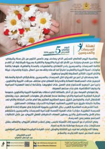 وزارة التربية الوطنية والتكوين المهني بشيشاوة يهنئ المدرسين والمدرسات بمناسبة اليوم العالمي للمدرس 5 أكتوبر2019 .